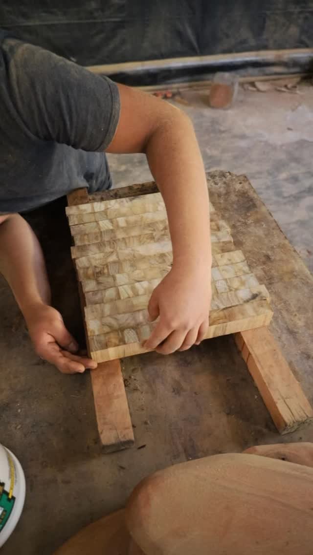 Portavela hecho de madera teca, forma orgánica que permite dar un realce al espacio.